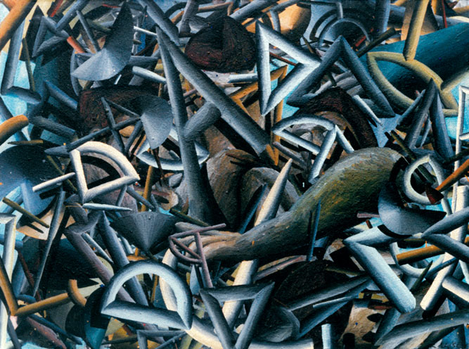Mit fortlaufender Serie wurde es immer schwieriger, die Großformate zu einem Ende zu bringen. Es war, als müsste ich zwei Metalle, die einander abstoßen, miteinander legieren. An diesem Punkt bin ich 1988 nach acht Bildern auch gescheitert. Andere Aspekte traten in den Vordergrund.