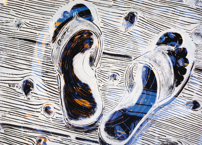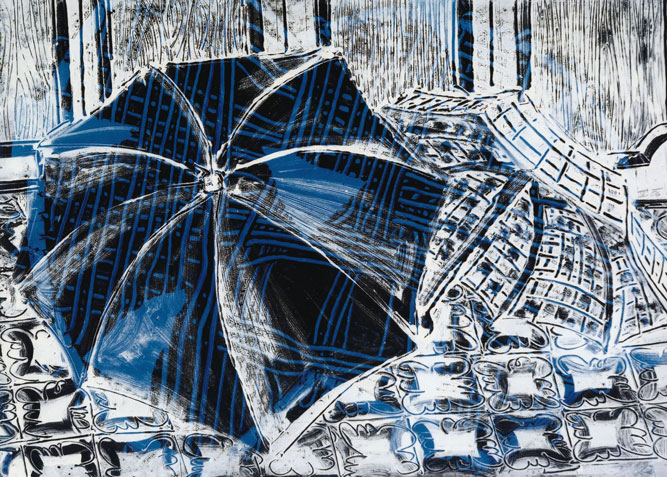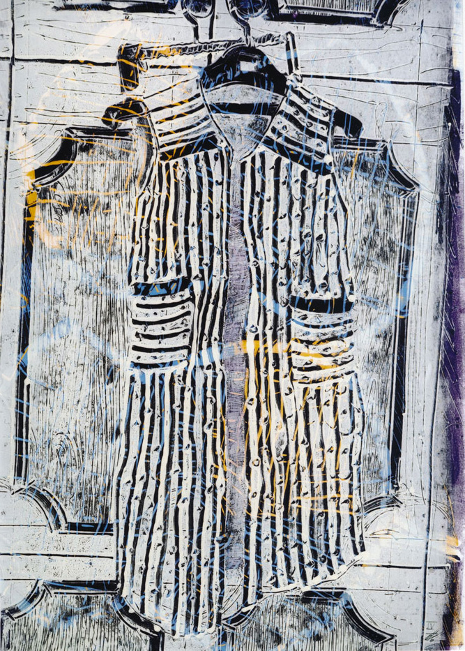 Die Grafiken sind als Farbmonotypien ausgeführt. Farbmonotypien sind Unikat-Grafiken, bei